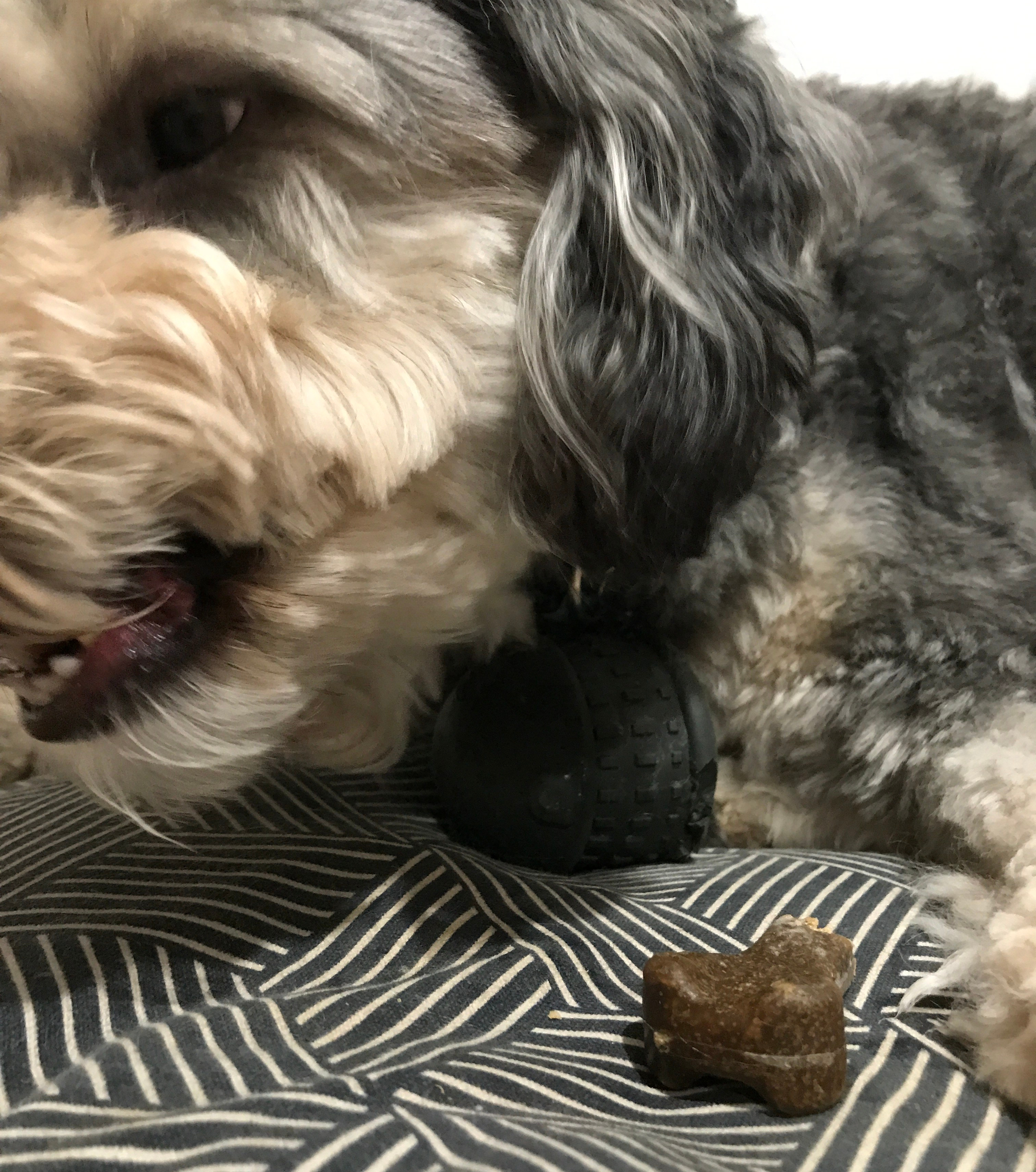 March 11, 2020 Dog Dental Treats: Good for Oral Health or Just Tasty Trickery? 3024 × 3422 Aussiedoodle Eating Zukes Z-Bone Dental Dog Treat