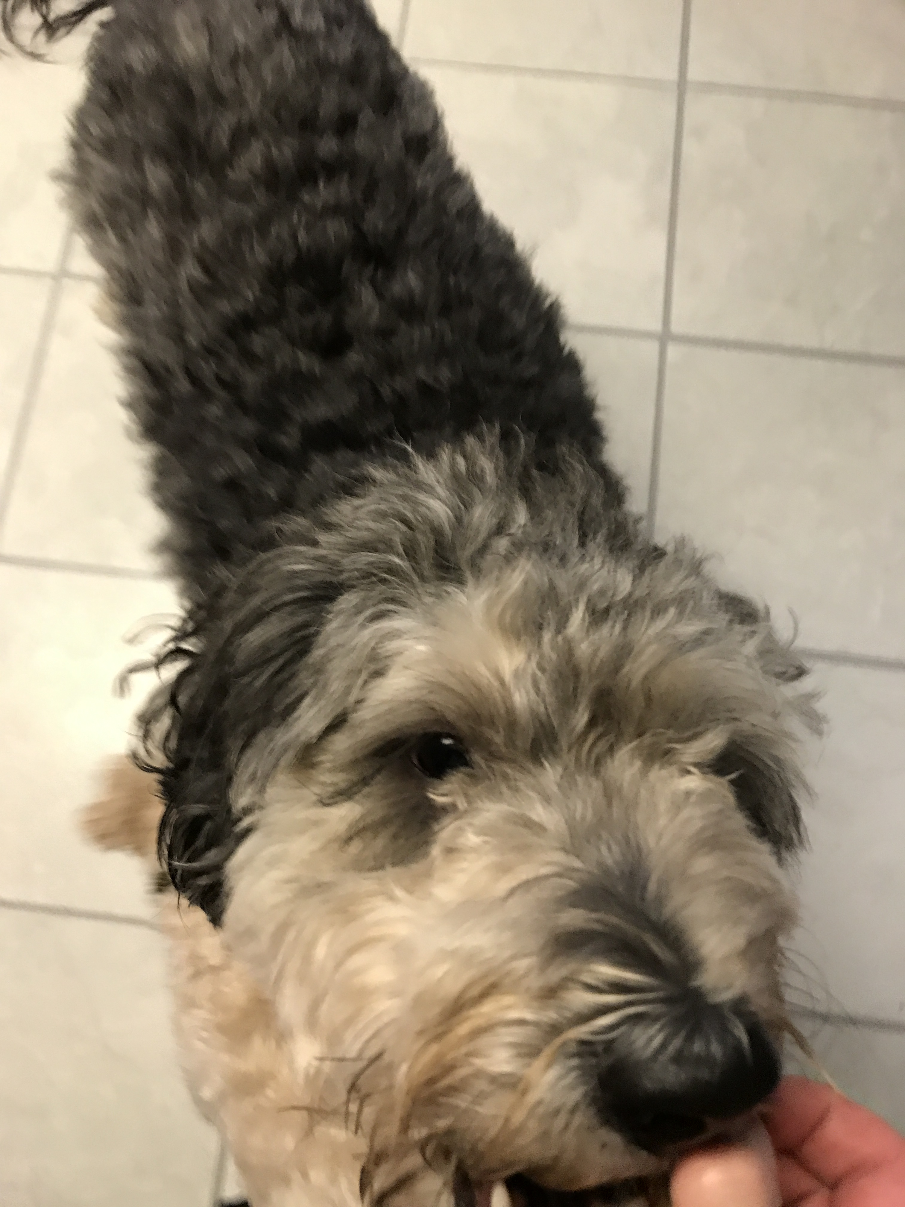 May 1, 2020 Birthday Week Day 1: Lazy Dog Pup-Pie 3024 × 4032 Aussiedoodle Eating Birthday Treat by Lazy Dog