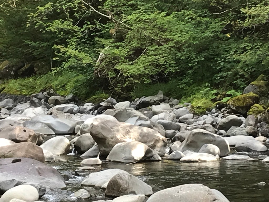 In another area on the same stream we lucked out and saw a few river otters hanging out – they took off when they saw us but I managed to get a photo of them as they were leaving: