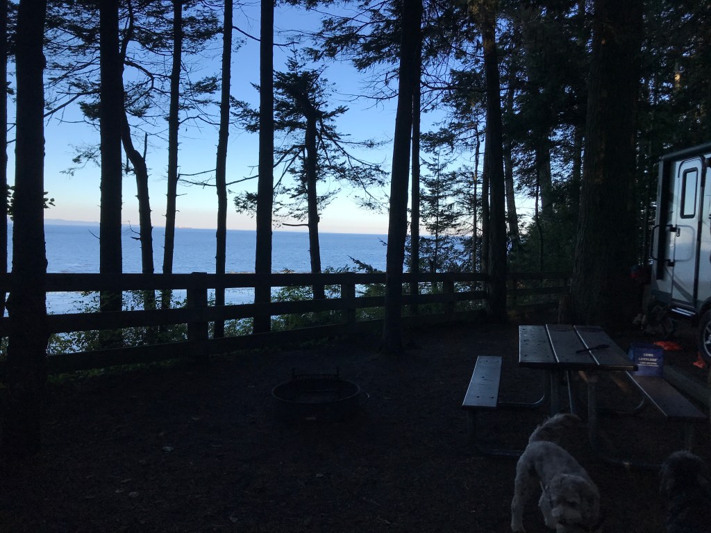 Our campsite was right on a cliff was a stunning view of the water. I took this photo at dusk when we first arrived so not the best shot, but the view really was beautiful and we had a good time looking for sea creatures in the waves from our picnic table.