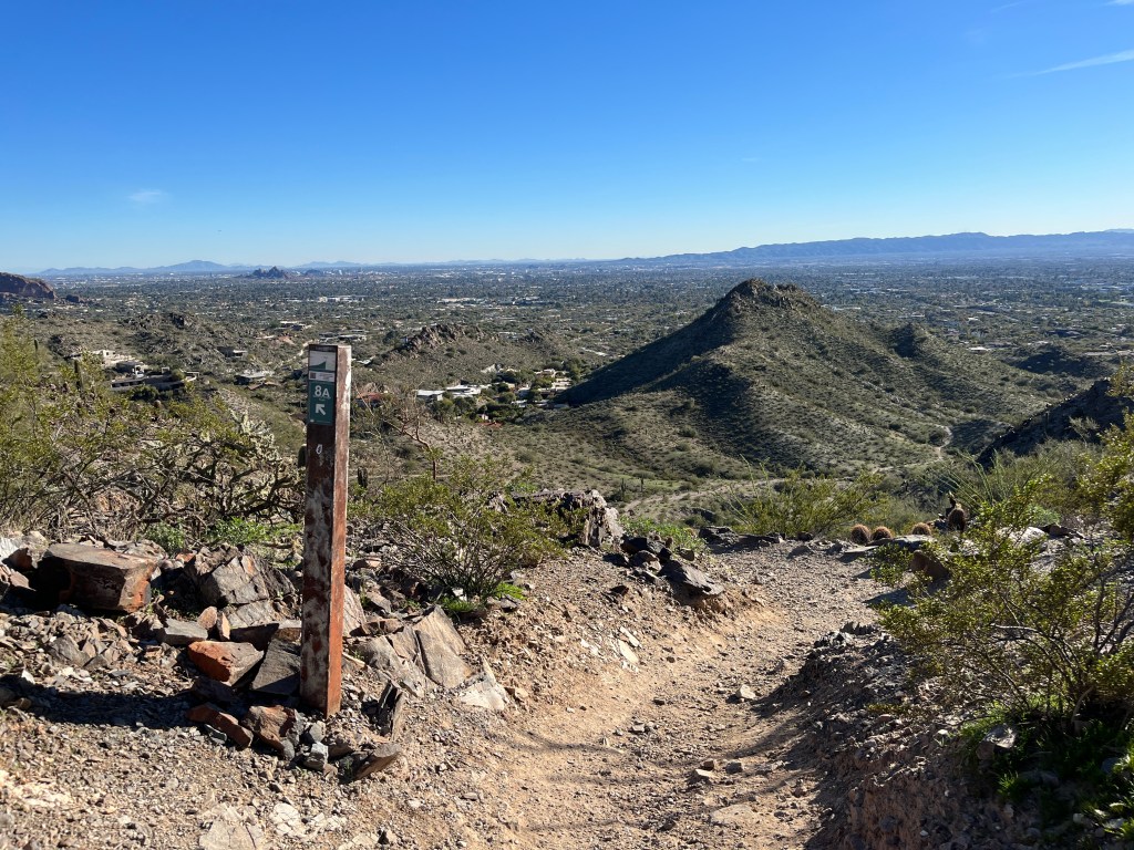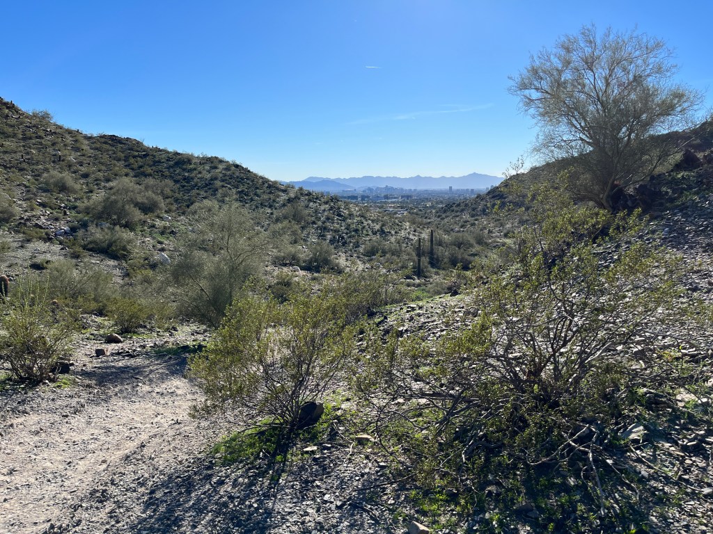 One suggestion I have is to hike to the top and then go back. The trail continues from the top down the other side into another little valley. Here the trail gets much tighter and doesn’t really offer much (anything after the view is going to be disappointing in comparison!). I did, however, see this gigantic sauguro cactus on that part of the trail: